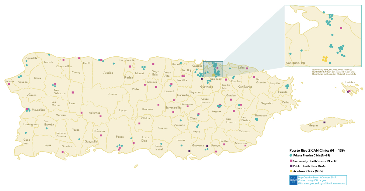 During the 2016-2017 Zika virus outbreak, Puerto Rico had the highest number of Zika virus infections in the United States, a high proportion of unintended pregnancies and limited access to contraception, including long-acting reversible contraception (LARC; intrauterine devices [IUD] and implants). To address these immediate needs in Puerto Rico, the National Foundation for the Centers for Disease Control and Prevention, Inc. (CDC Foundation), with technical assistance from the CDC and in collaboration with a diverse group of stakeholders in Puerto Rico and philanthropy, established the Zika Contraception Access Network (Z-CAN) in Puerto Rico. Z-CAN established a network of trained physicians across Puerto Rico to provide client-centered contraceptive counseling and offered women same-day access to the full range of FDA-approved reversible contraceptive methods at no cost.